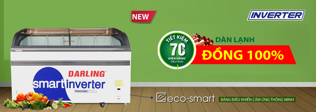 Tủ đông Darling 800 lít DMF-7079ASKI là sản phẩm mang thương hiệu Việt Nam có dàn lạnh bằng đồng và được áp dụng công nghệ máy nén biến tần Inverter giúp tiết kiệm lên đến 70% điện năng tiêu thụ. Tủ được thiết kế cửa kính cong nắp trượt có hệ thống đèn led bên trong tủ, phù hợp bảo quản và trưng bày kem, sữa chua, đồ uống, thịt cá, đồ đông lạnh…