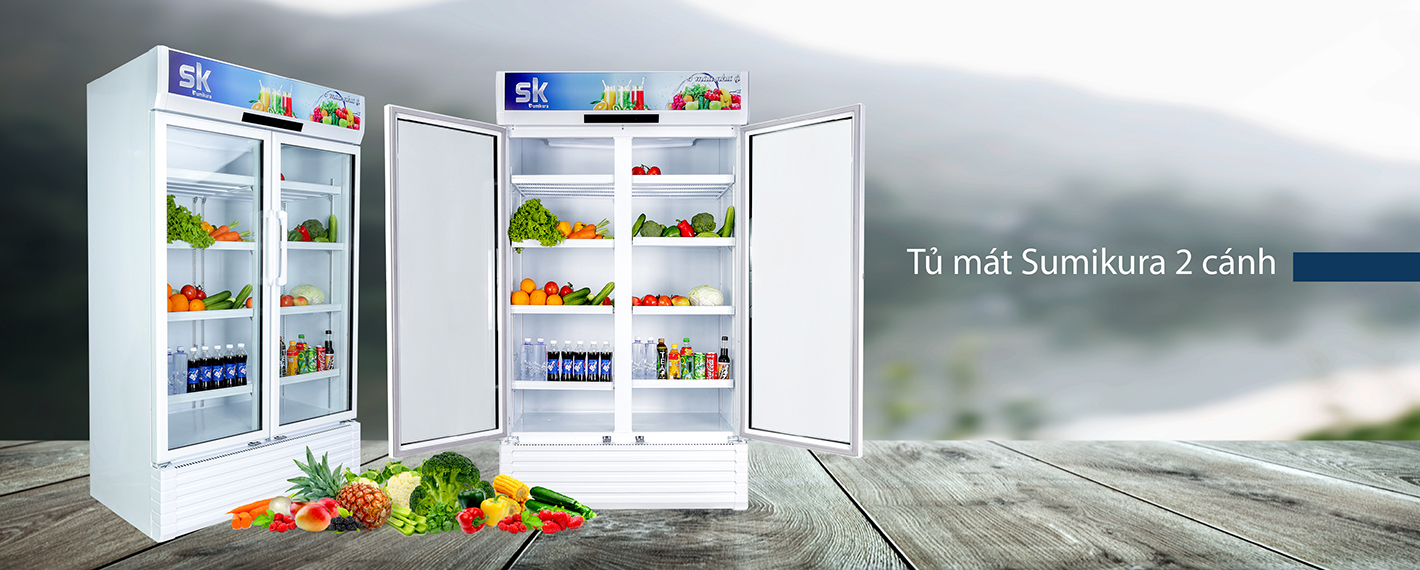 Tủ mát Sumikura dung tích 800l, 2 cánh rộng rại, các ngăn chứa xếp tầng phù hợp với mọi không gian bán hang từ đại lí, siêu thị, cửa hang tạp hóa, nhà hang, cửa hang thực phẩm,… có thể bảo quản nhiều loại thực phẩm từ đồ ăn tươi sống đến đồ đóng hộp, đồ uống,…